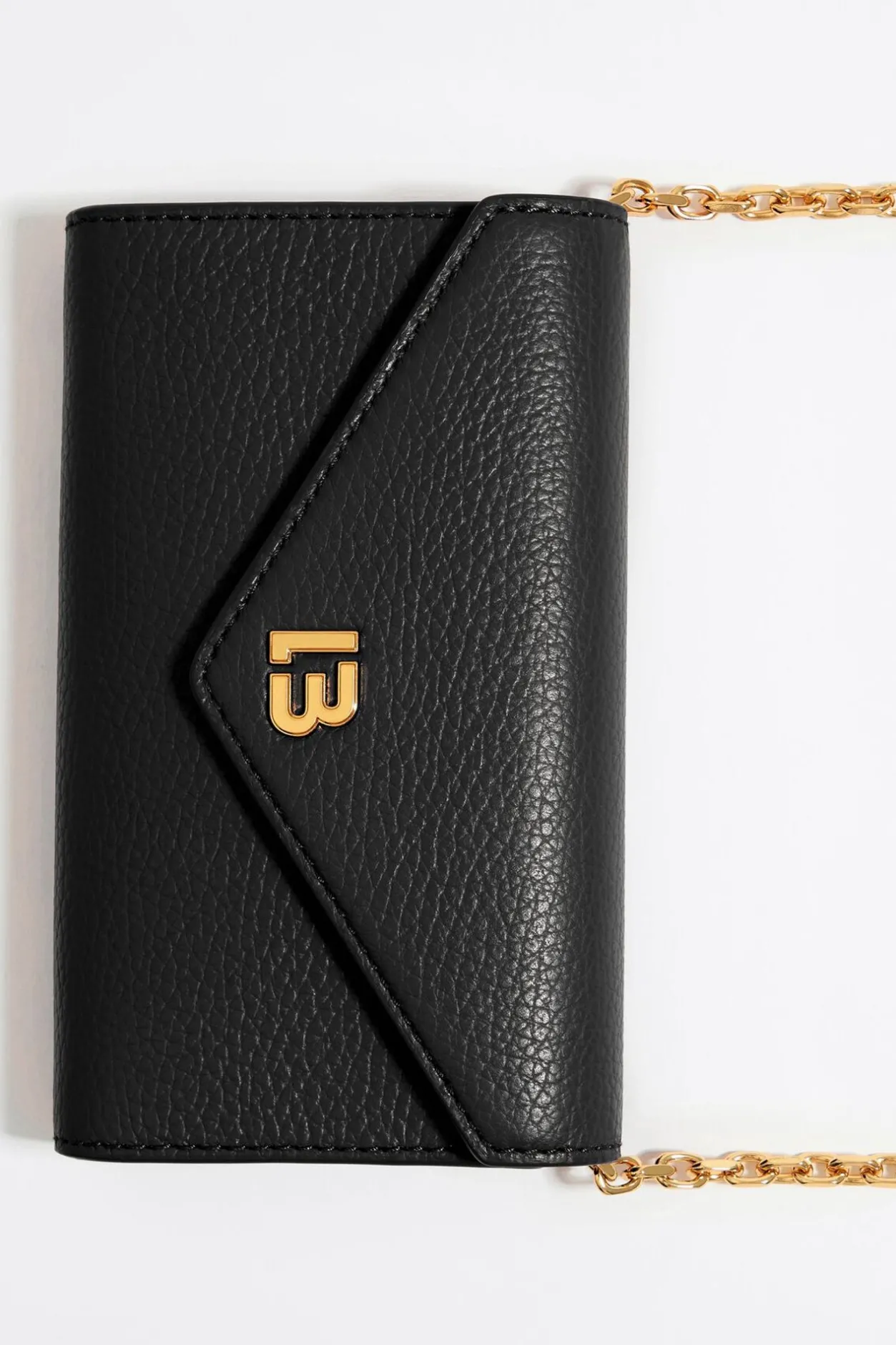 Bolso De Piel En Color Negro. Modelo De TamaÑO Mini, Cierre A PresiÓN, Asa Larga De Cadena Y Bolsillo Interior. Exterior Personalizado Con Logo Lb. Este Modelo Contiene 100% AlgodÓN Reciclado.
