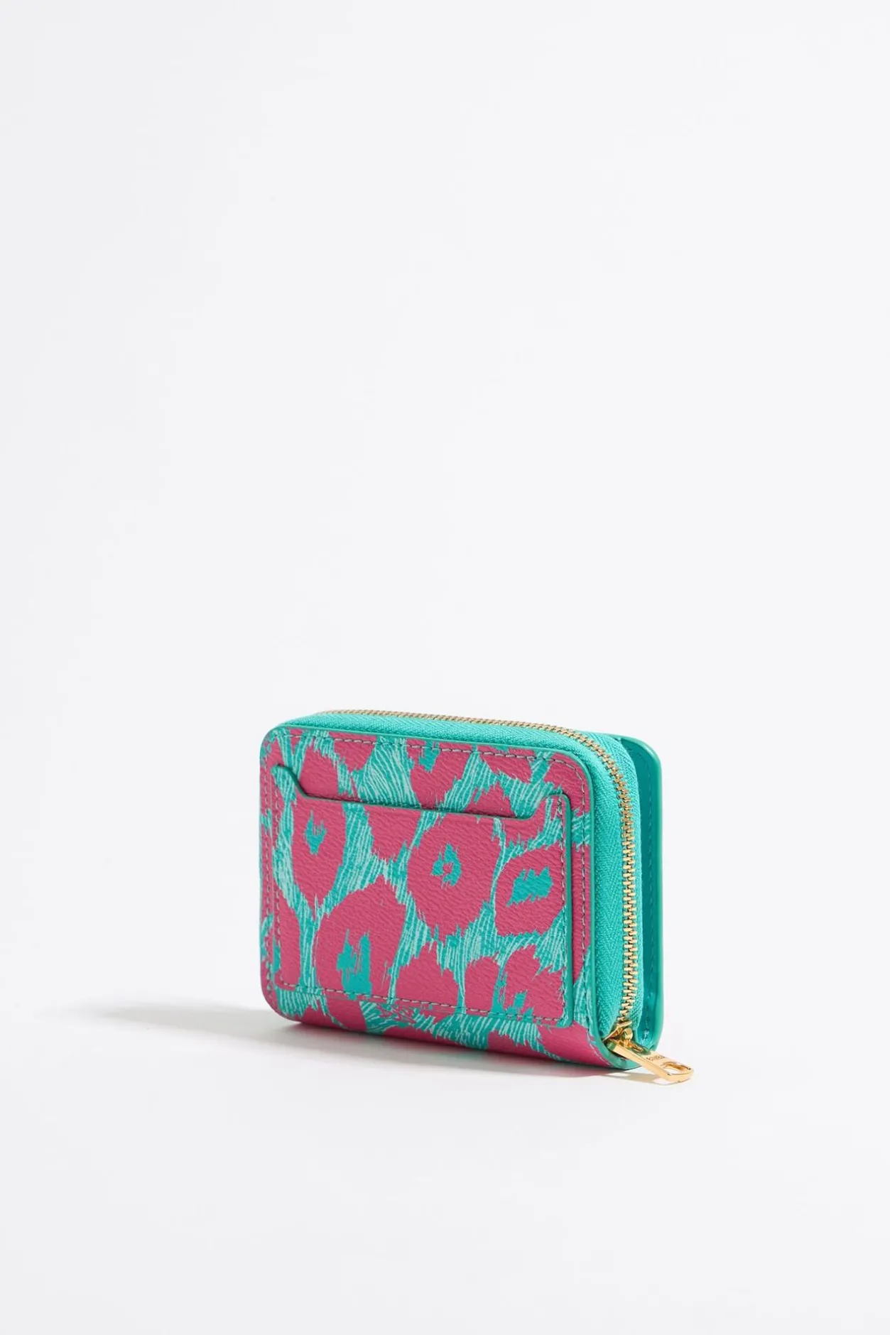 Cartera Solapa De Textura Caviar Con Print Leopard En Color Turquesa. Modelo Con Cierre De Cremallera Y Snap, Y Tarjetero Interior. Exterior Personalizado Con Logo MetÁLico.