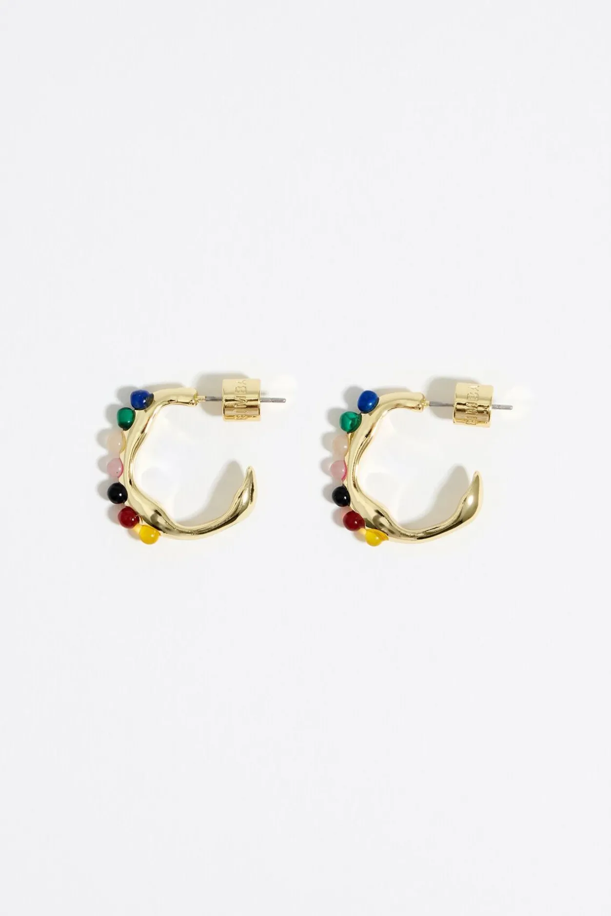 New BIMBA Y LOLA Pendientes Aro Mini Dorado Piedras