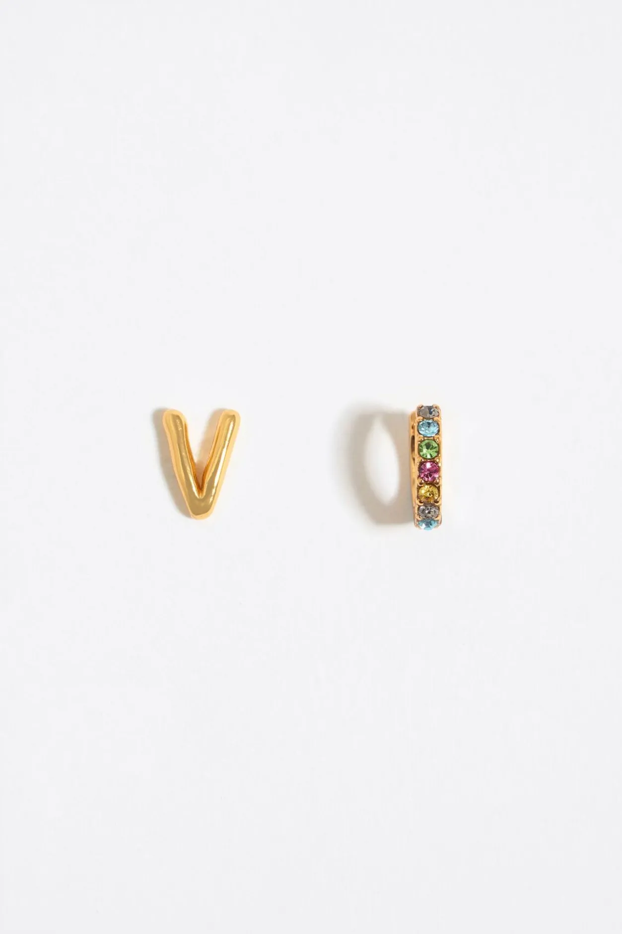 New BIMBA Y LOLA Pendientes Letra V Y Aro Mini Cristales Multicolores