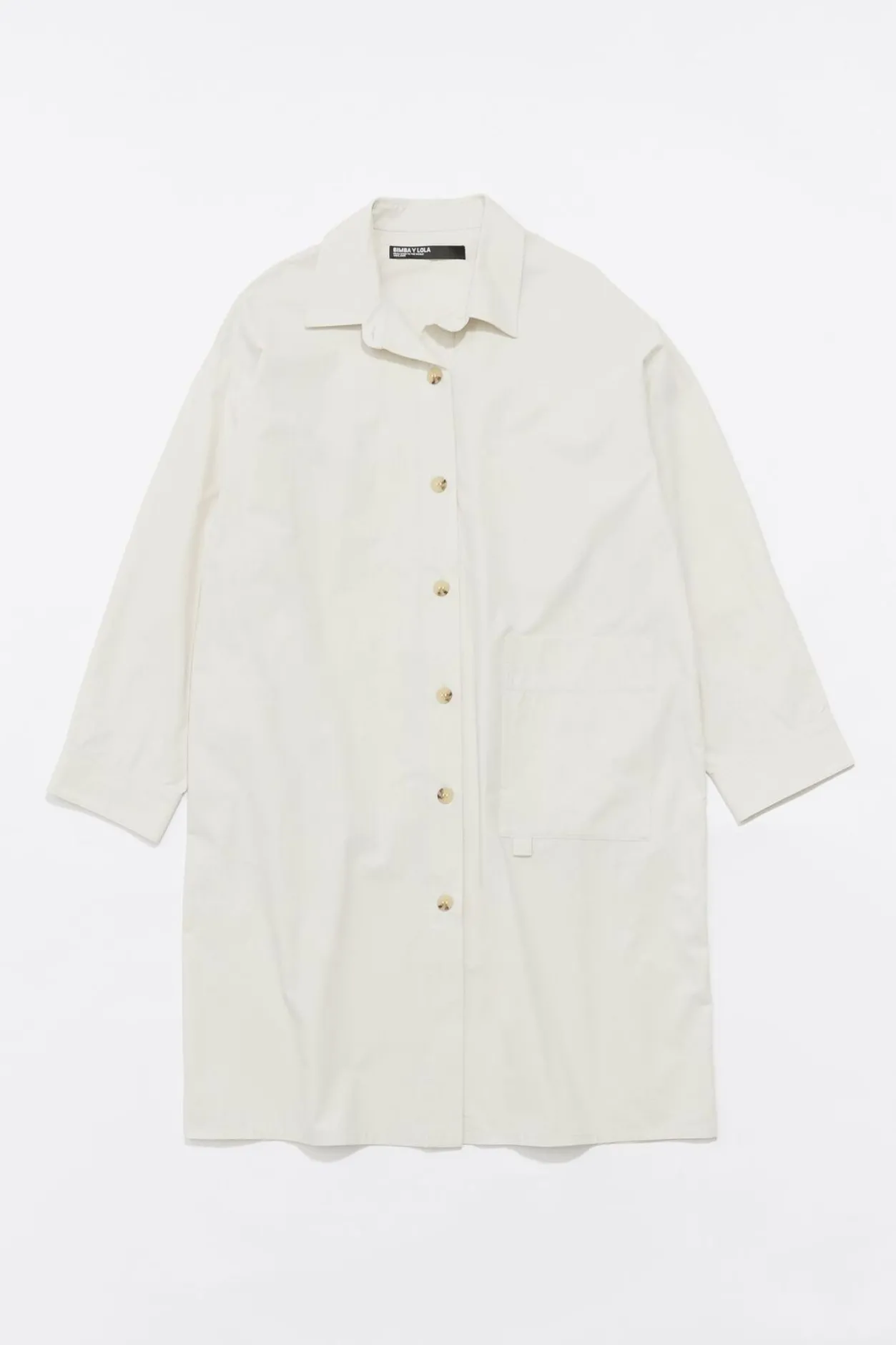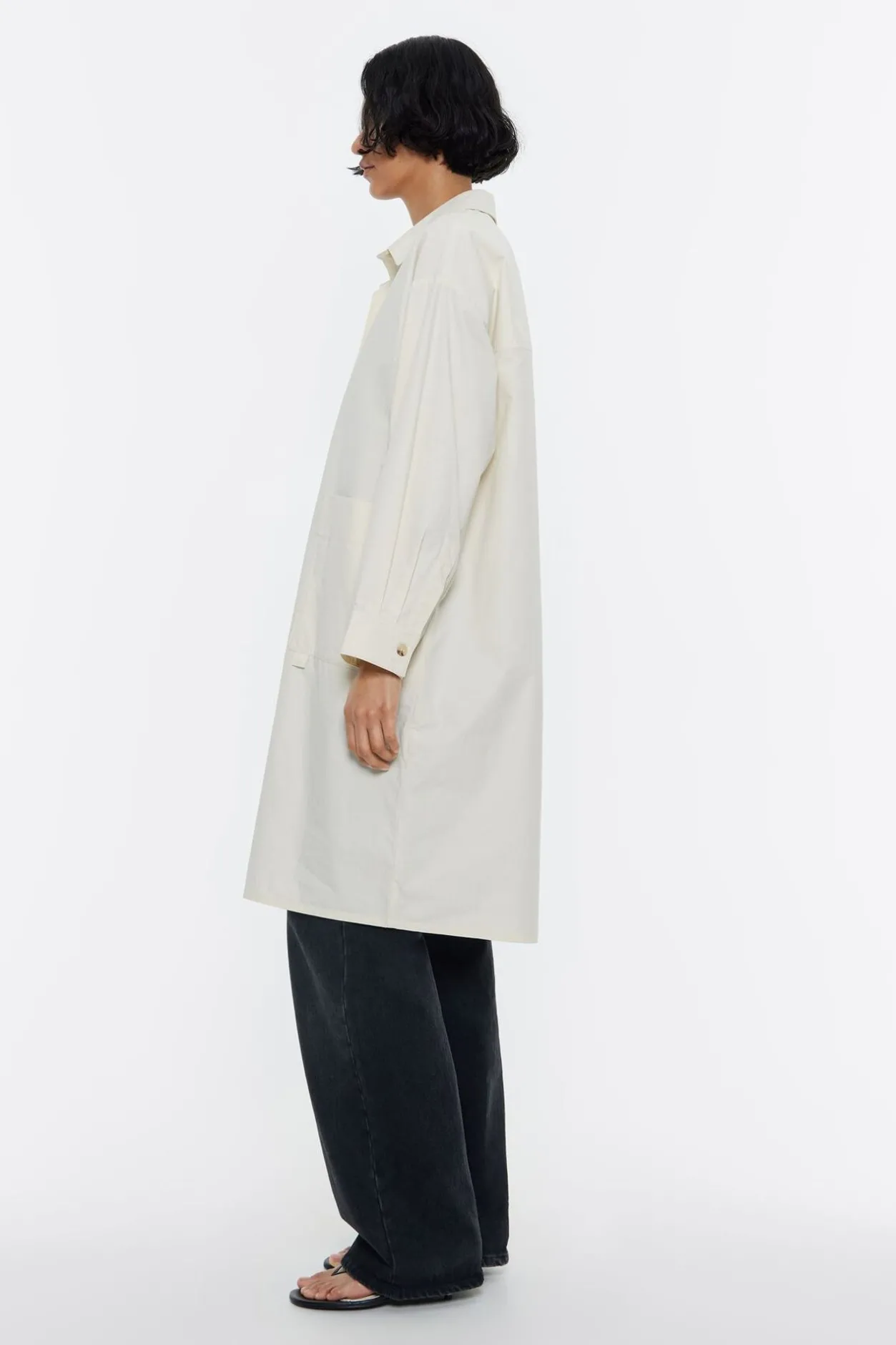 Camisa Midi De AlgodÓN En Color Marfil. Modelo De Corte LÍNea A, Con Cuello Camisero, Manga Larga Con Botones En PuÑO Y Cierre Frontal Con Botonadura. Bolsillo PlastrÓN Con Loop De Tejido En El Delantero.