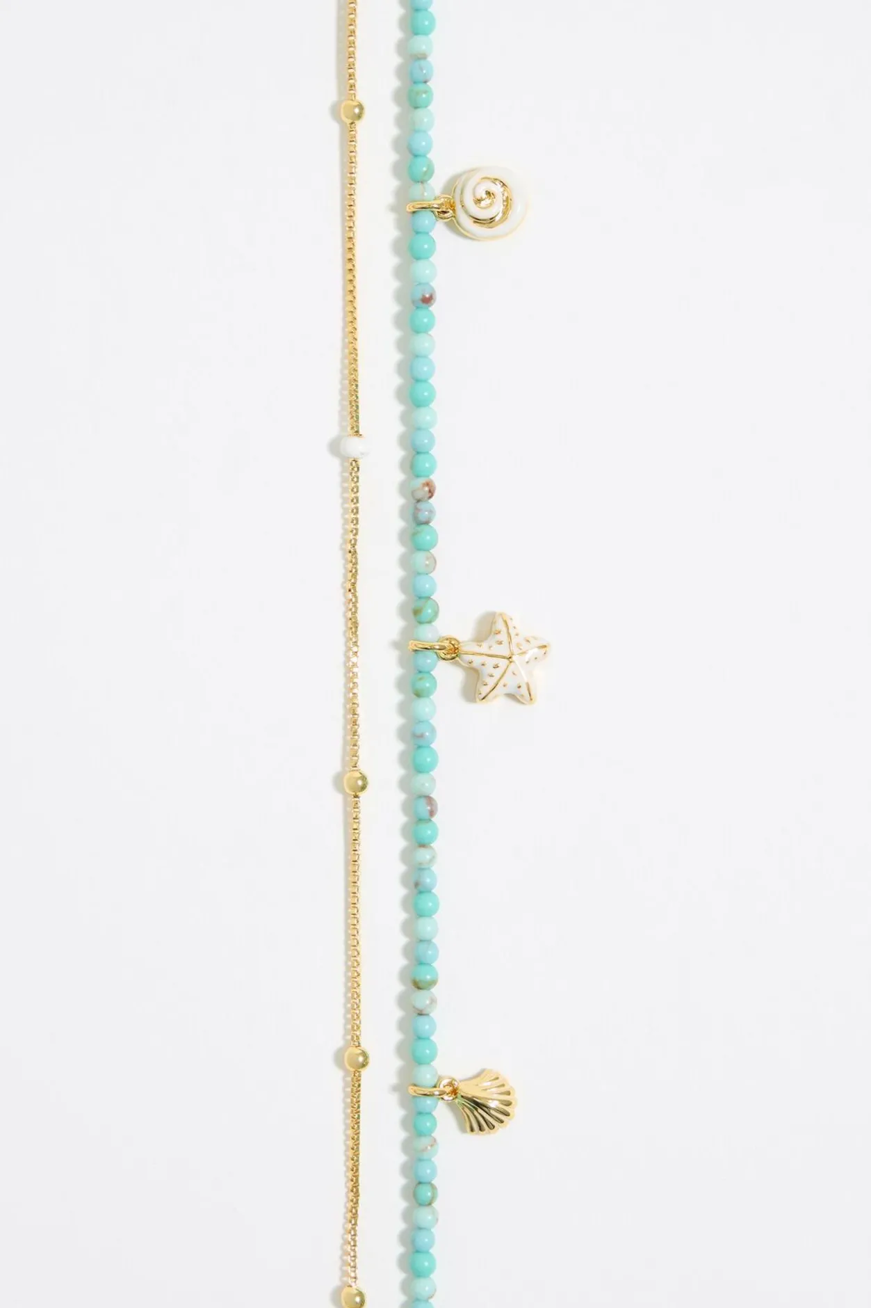 Online BIMBA Y LOLA Collar Doble Estrella De Mar Y Cadena Turquesa
