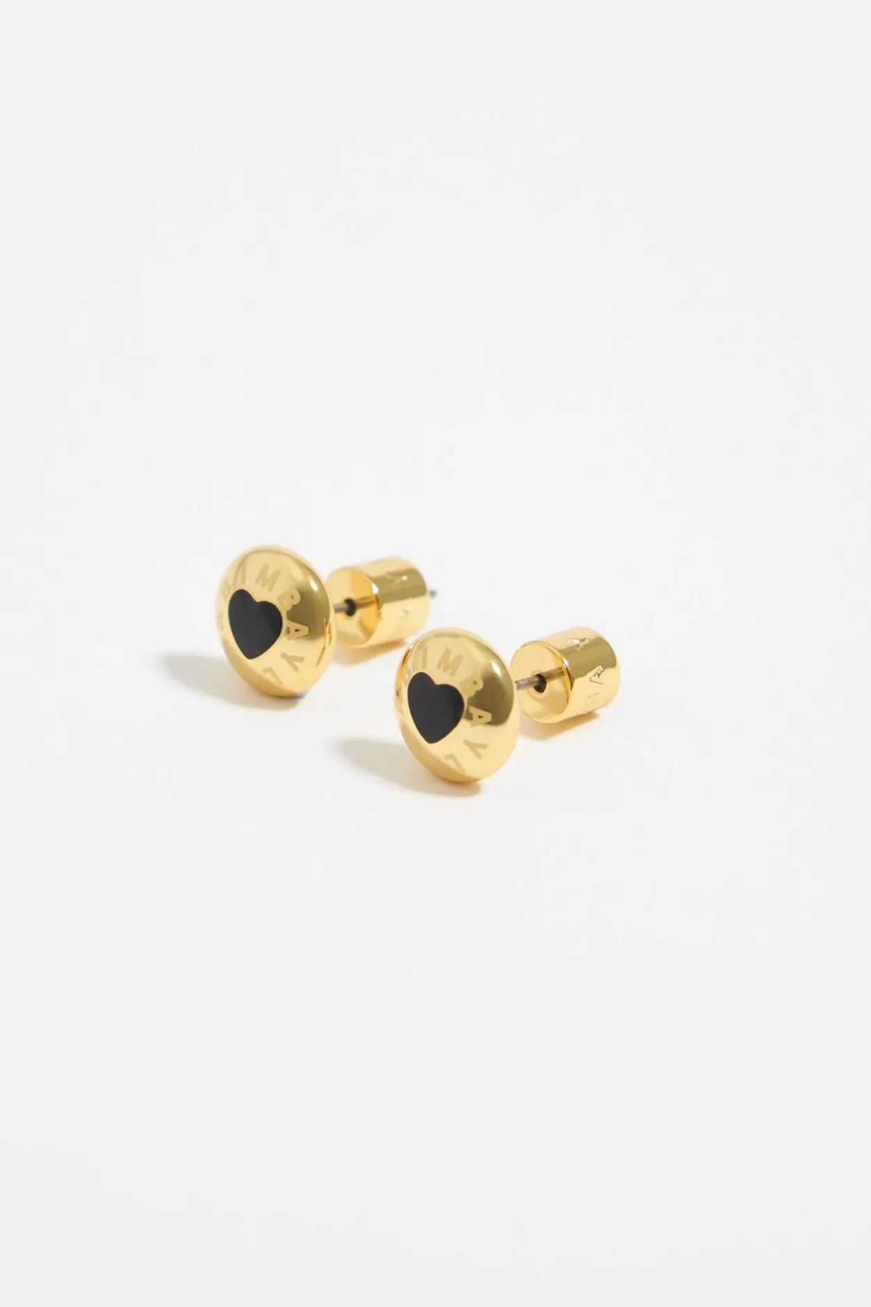 Pendientes De Metal Dorado Con Logo Candy Y CorazÓN En Color Negro. Modelo Con Cierre De PresiÓN. Personalizado Con Logo Grabado.