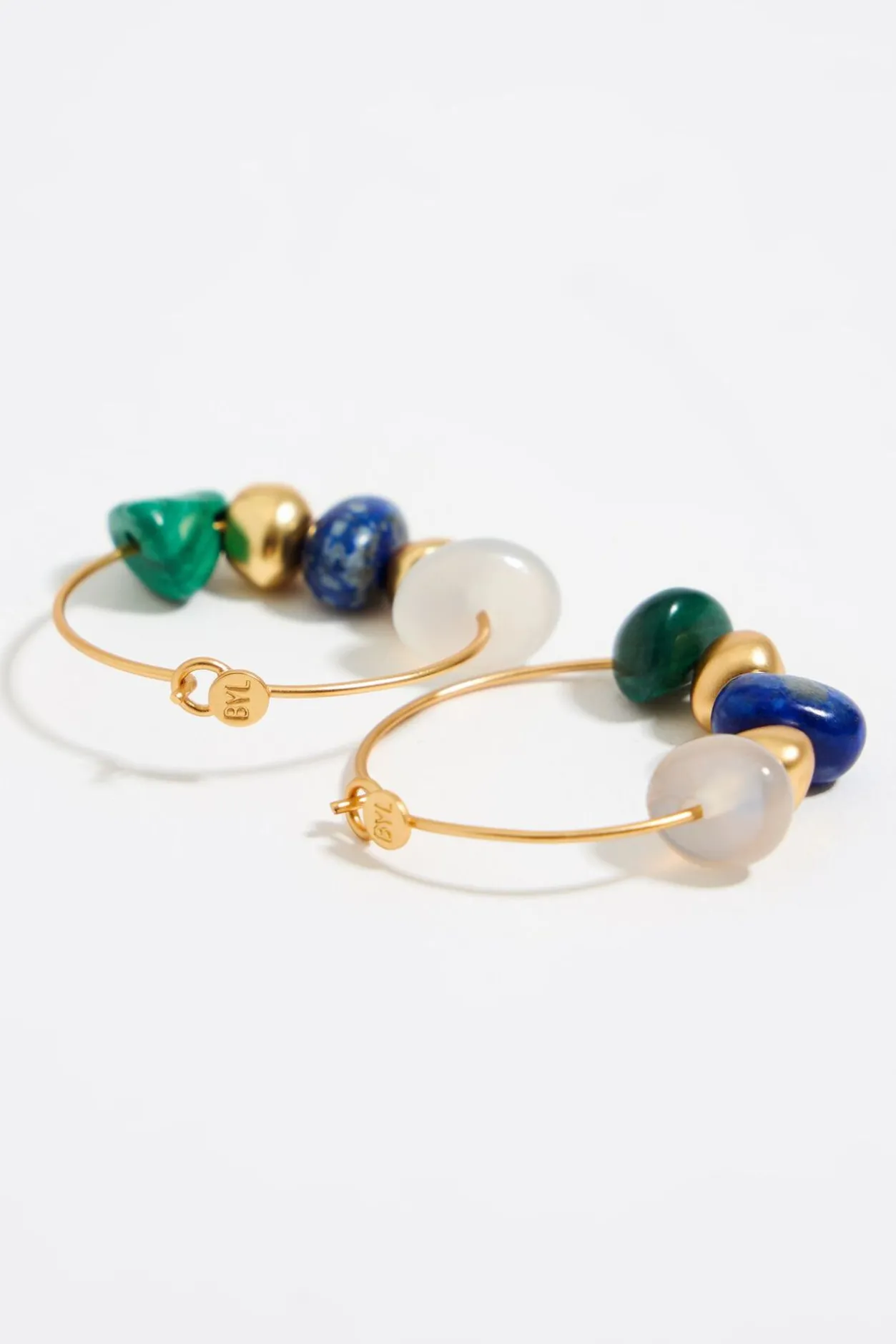 Pendientes De Aro En Dorado Mate Con Piedras. Modelo Con Cierre De Gancho. Personalizados Con El Logo Grabado.