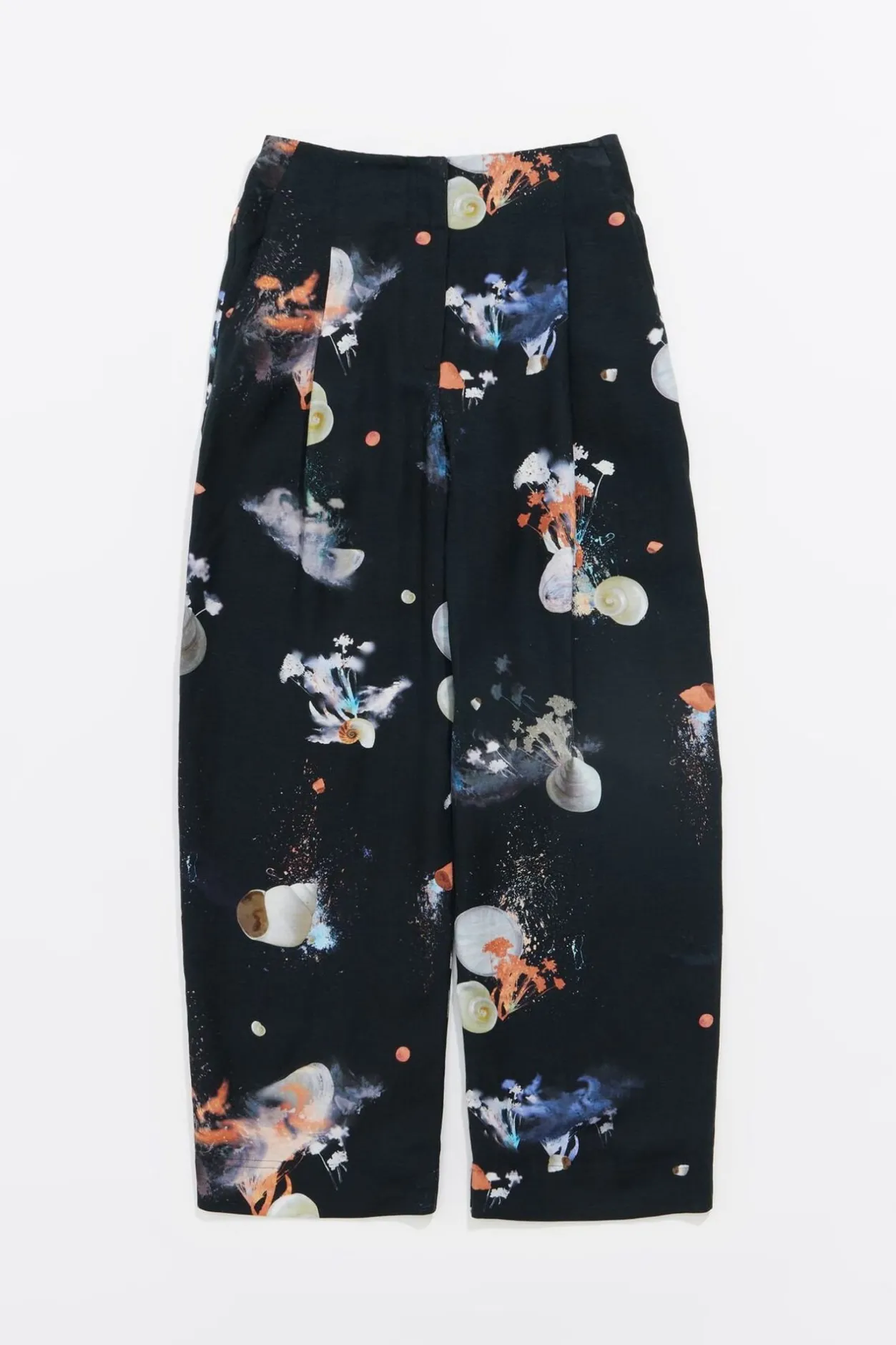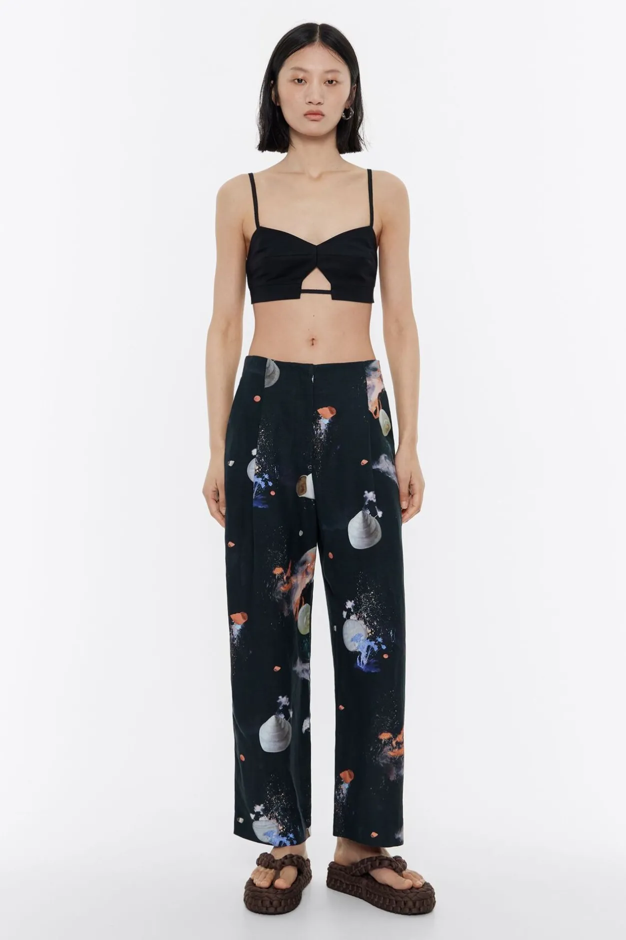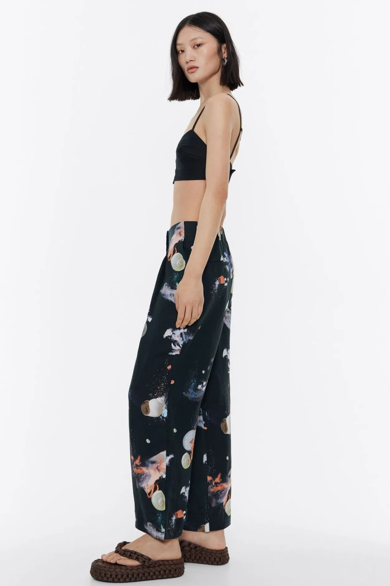 PantalÓN Mezcla De Lino Con Print Waves En Color Antracita. Modelo De Corte Carrot, Largo Tobillero, Cierre De Cremallera Frontal Y Botones Laterales. Cintura Fruncida En La Espalda Y Pinzas En El Delantero. Este Modelo Contiene 100% Viscosa De ProducciÓN Responsable.
