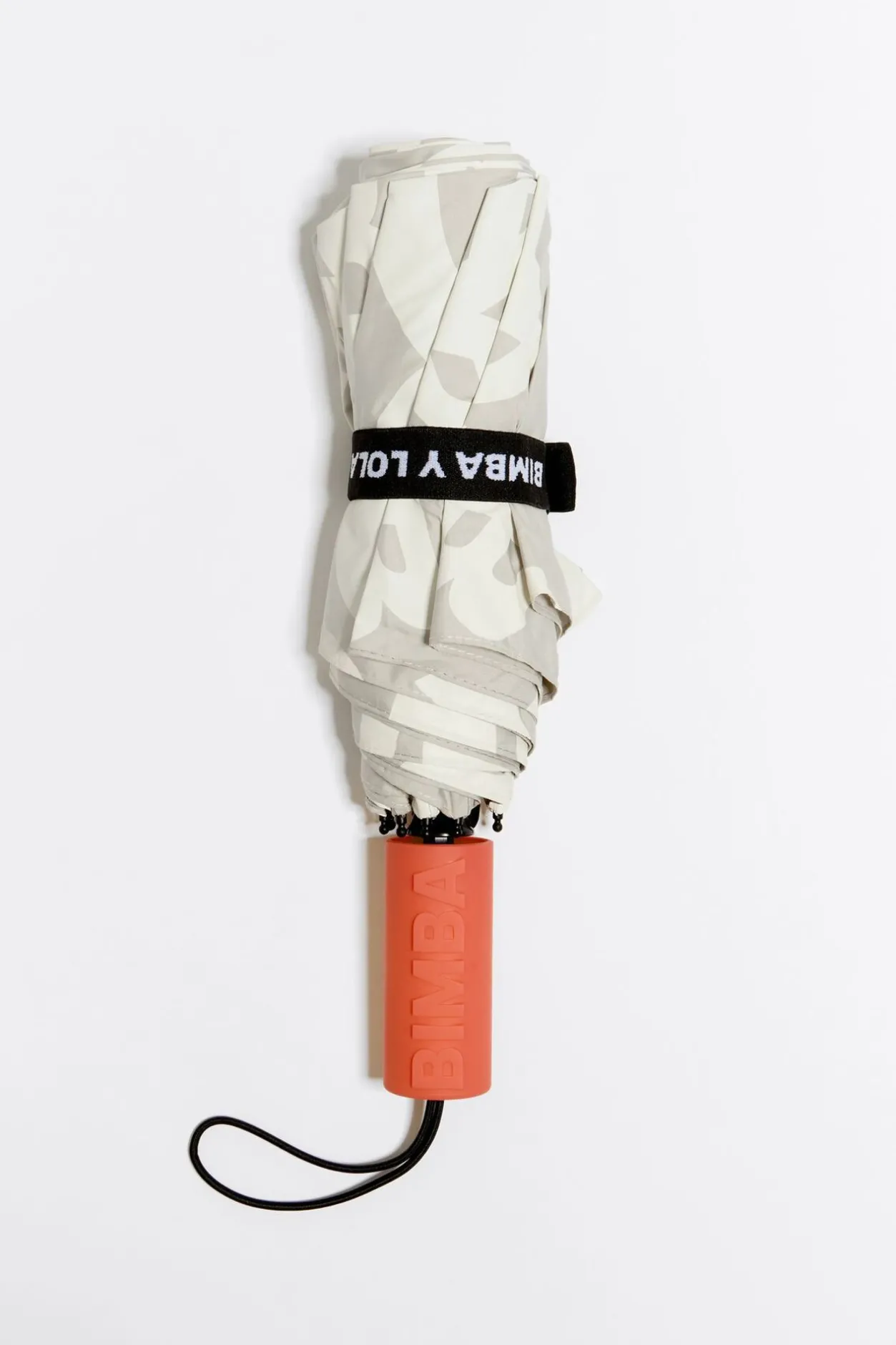 Paraguas Plegable De Tejido TÉCnico Con Estampado Bimbaola En Color Marfil. Modelo Con Mango Con Efecto Engomado.