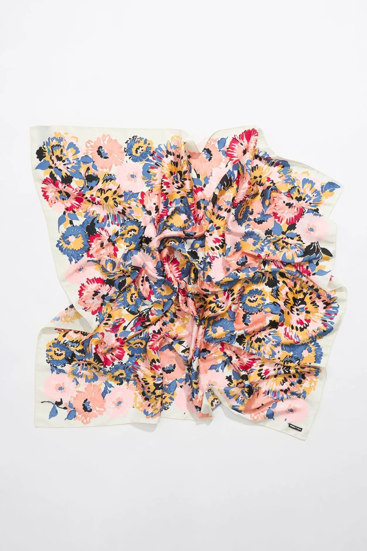 PaÑUelo Cuadrado De Flores Rotulador Sobre Fondo Color Coral. Modelo Personalizado Con Etiqueta Logotipada. 100% PoliÉSter Reciclado.