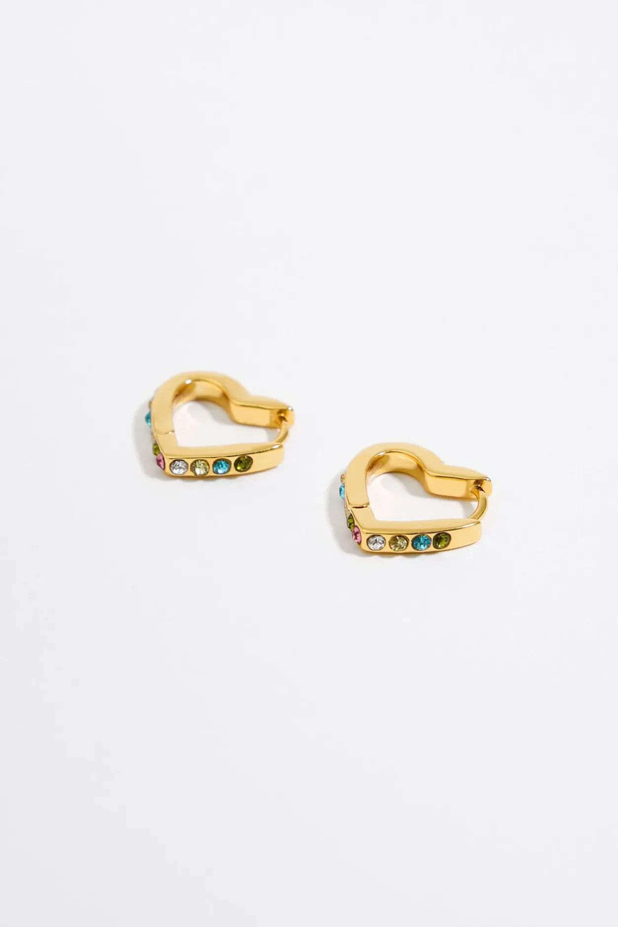 Pendientes De Aro Dorados En Forma De CorazÓN Con Cristales Multicolores. Modelo Con Cierre De Gancho.