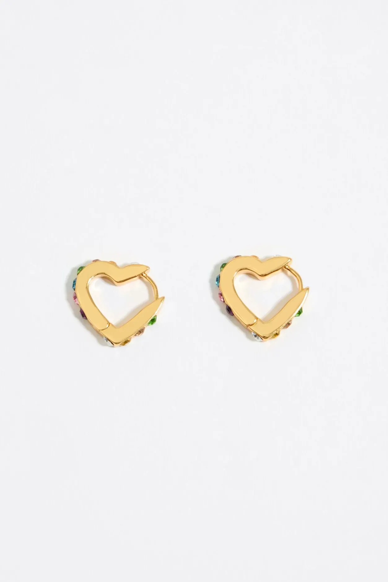 Shop BIMBA Y LOLA Pendientes Aro Mini Corazon Cristales Multicolor