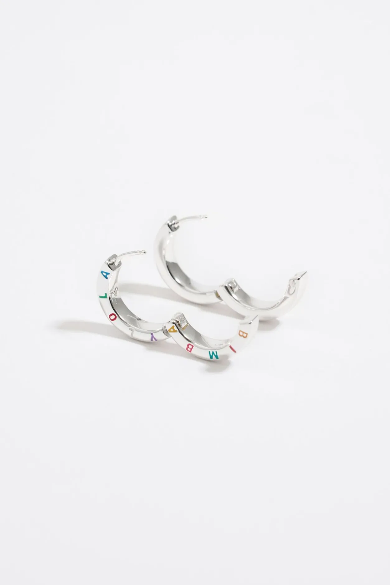 Shop BIMBA Y LOLA Pendientes Aro Plateados Logo Multipastel