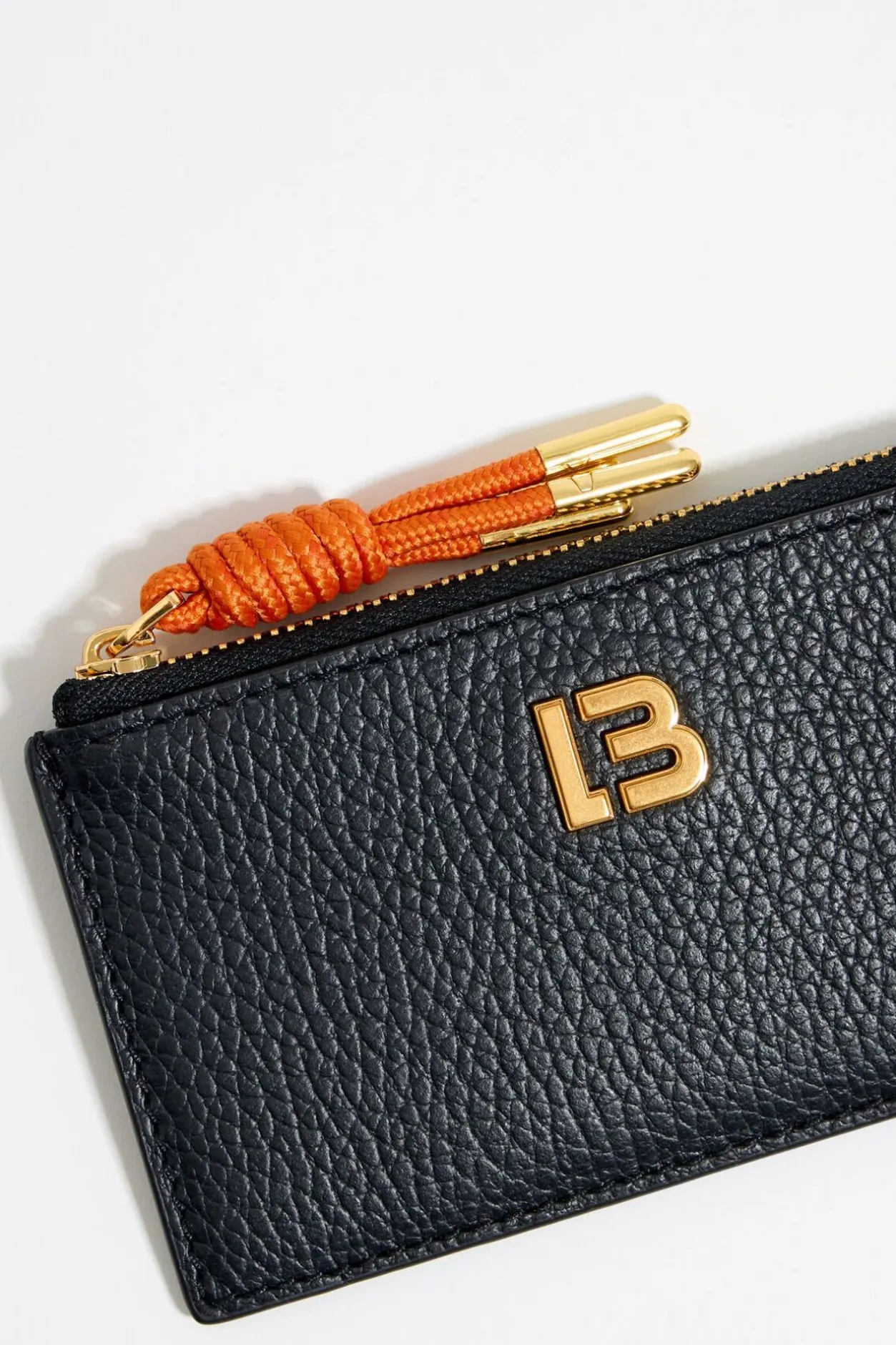 Tarjetero-Monedero De Piel En Color Negro. Modelo Con Cierre De Cremallera, Tirador Con Cabo Y Tarjetero Exterior. Exterior Personalizado Con Logo Lb.