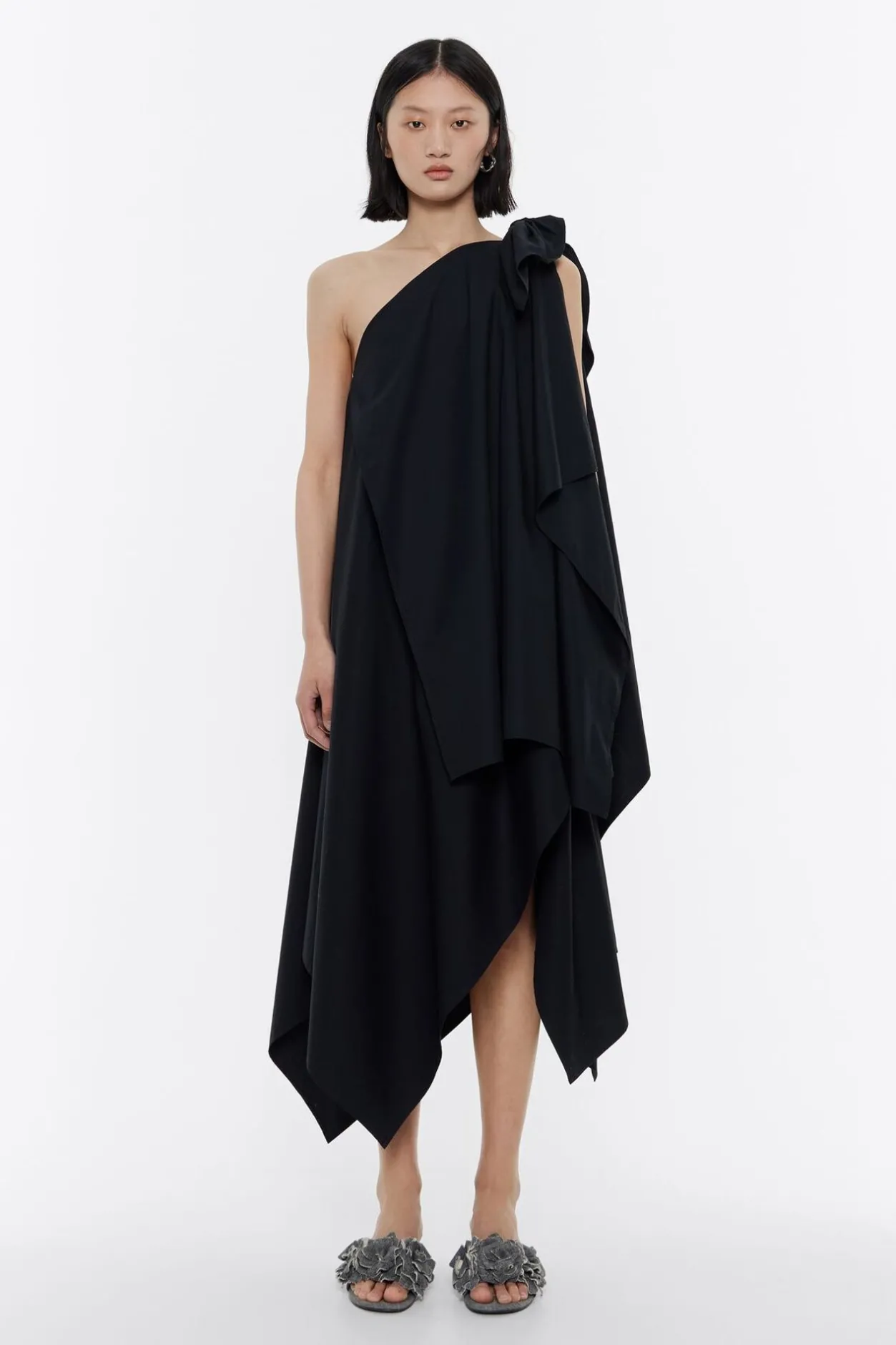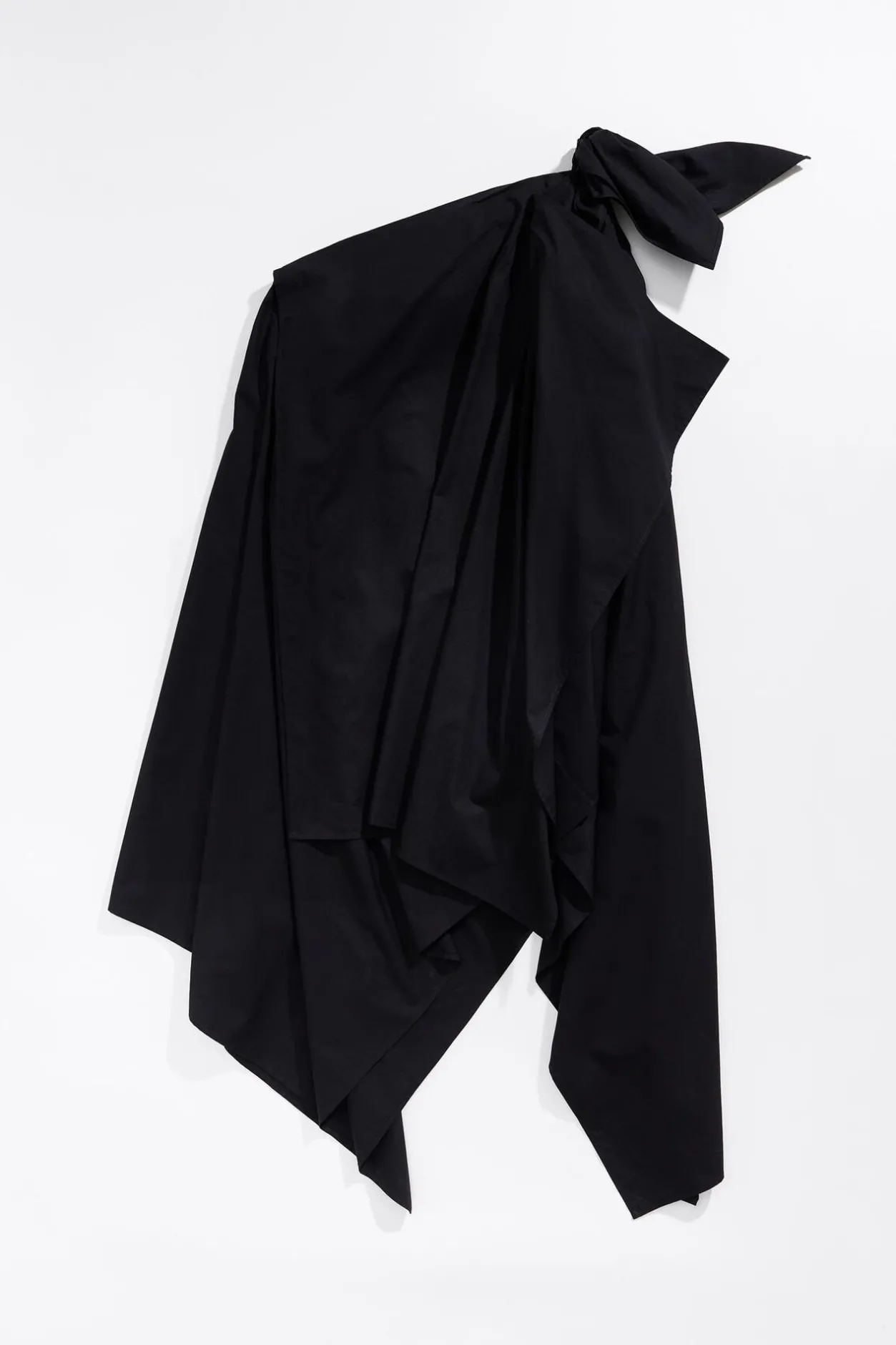 Vestido Multicapas De AlgodÓN En Color Negro. Modelo De Corte Recto, Escote Sin Un Hombro Y Cierre De Cremallera Invisible Lateral. Lazo En El Hombro.