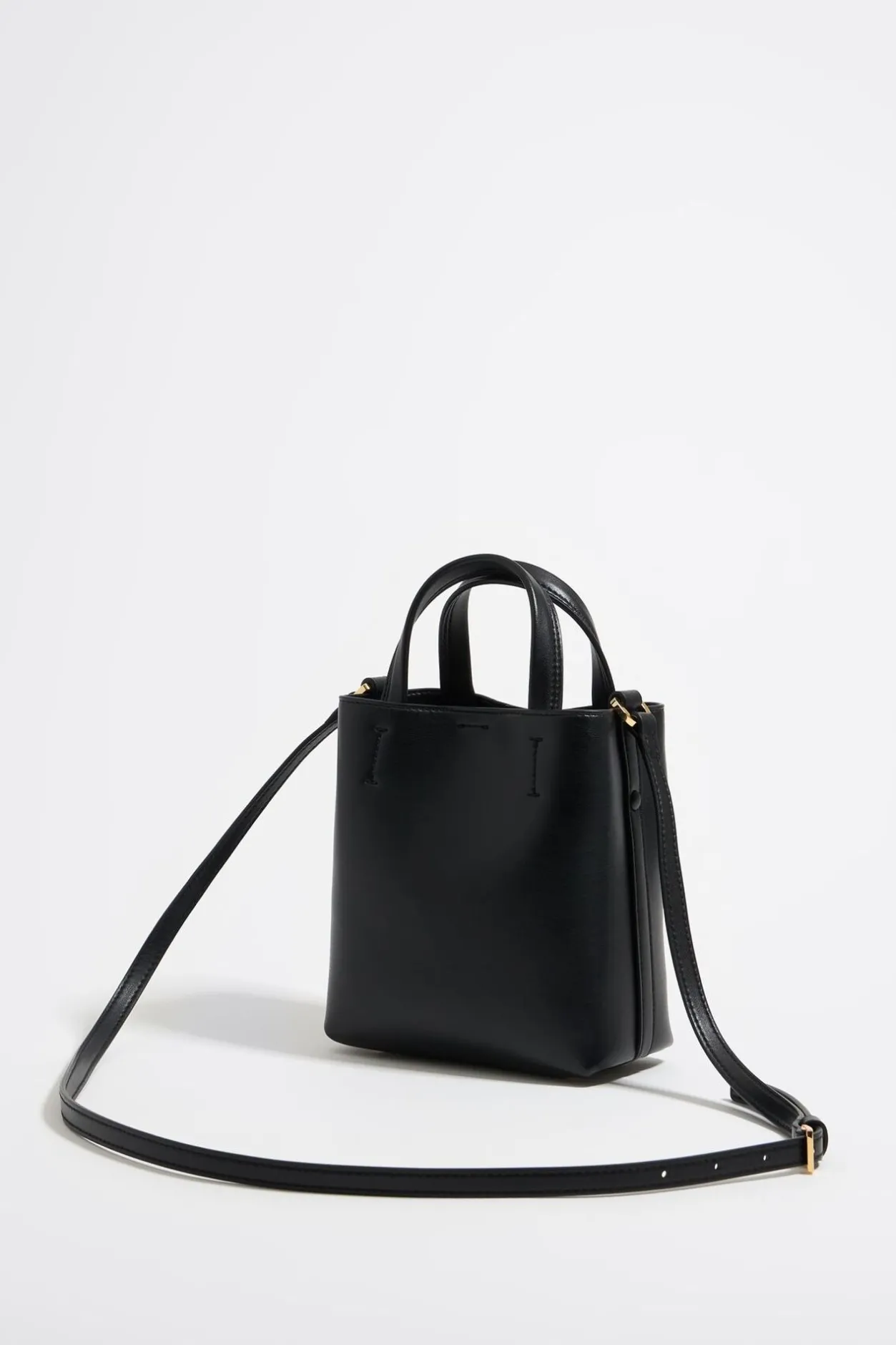 Bolso De Mano Chihuahua De Piel Reconstituida En Color Negro. Modelo De TamaÑO Mini, Cierre A PresiÓN, Doble Asa De Mano, Asa Larga De Piel Reconstituida Ajustable Y Bolsillo Interior Con Cremallera. Exterior Personalizado Con Logo MetÁLico.