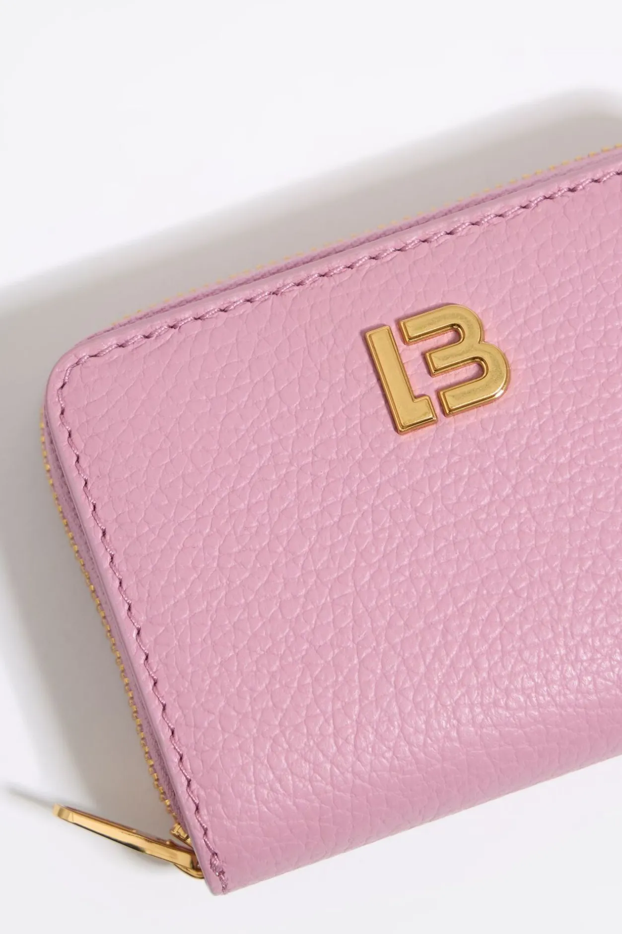 Cartera Con Solapa De Piel En Color Rosa. Modelo Con Cierre De Cremallera Y A PresiÓN, Y Tarjetero Interior. Exterior Personalizado Con Logo Lb.