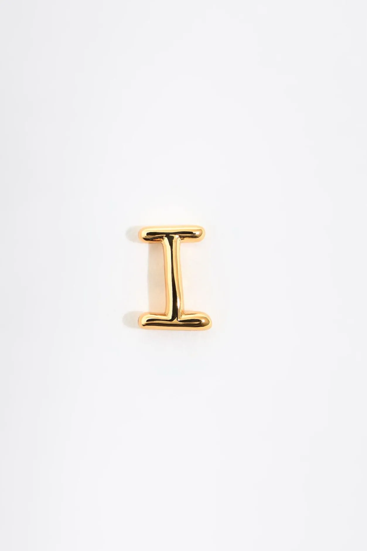 Pendientes De Aro Mini Dorado Con Cristales Y Letra I. Cierre De PresiÓN. Personalizado Con El Logo Grabado.